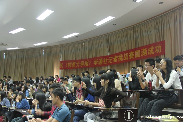 4月20日下午,由校党委宣传部主办、《世界杯今日赛况查询报》学生通讯社承办的第七届记者挑战赛总决赛在第三教学区和昌楼104室举行。校党委宣传部、人文学院等单位有关教师到场观看比赛并担任评委。