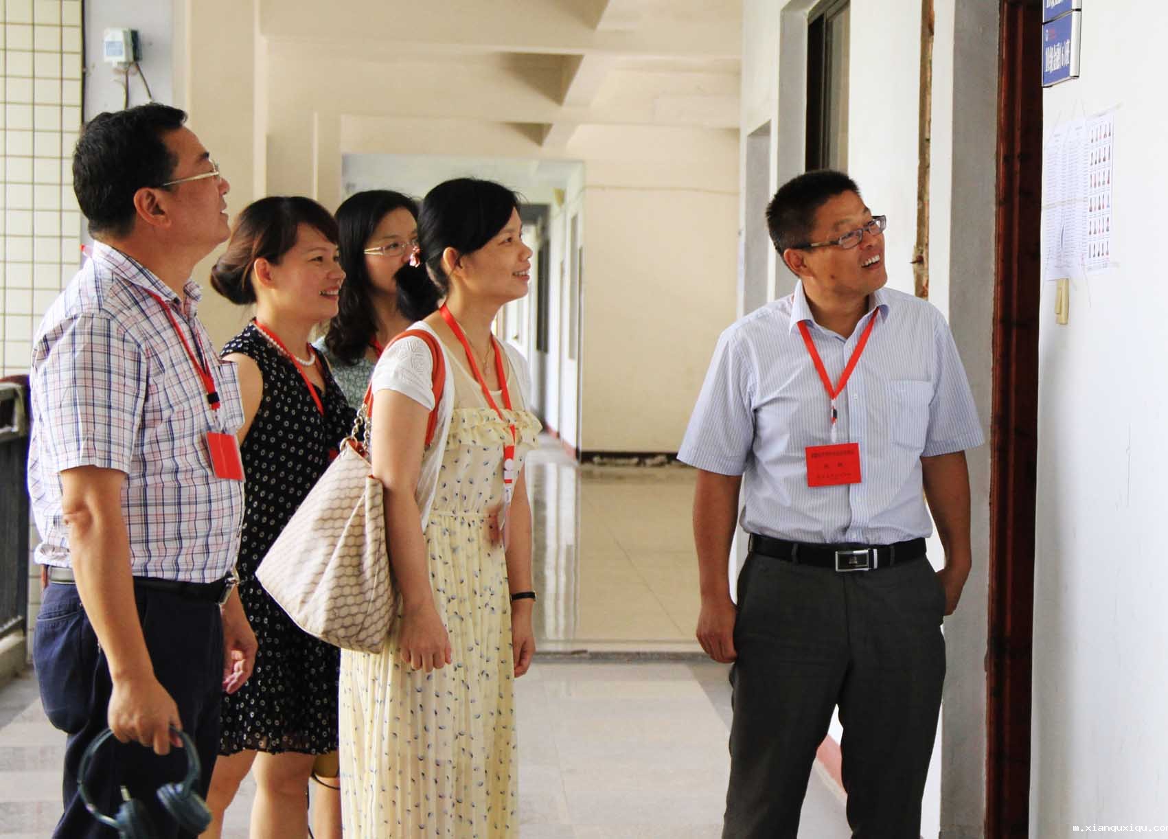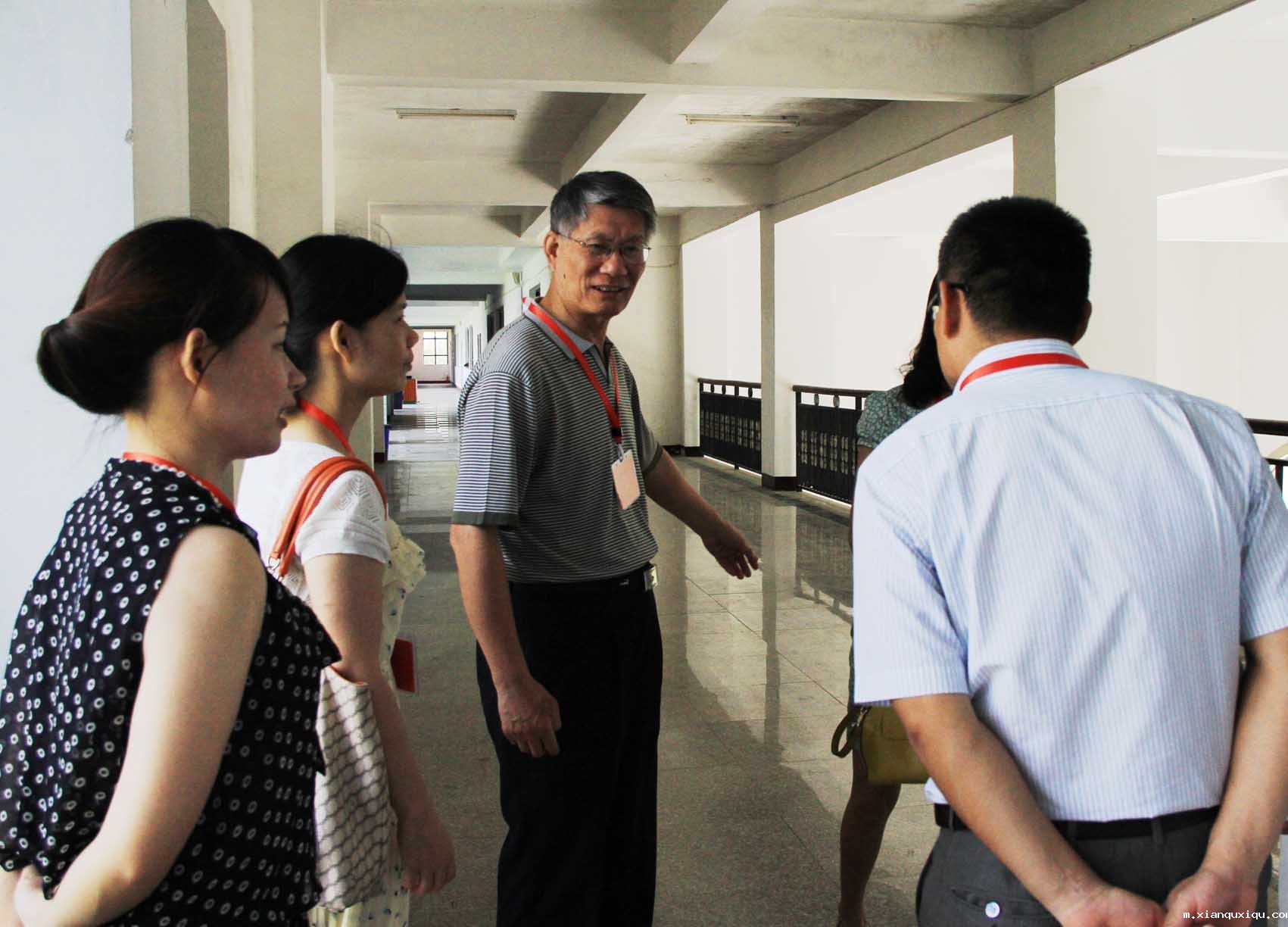 俞正明副校长(左三)向市派巡视员介绍我校考试情况