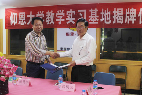 政法学院常务副院长陈建平(左)与福建泉中律师事务所主任涂明忠(右)签订协议