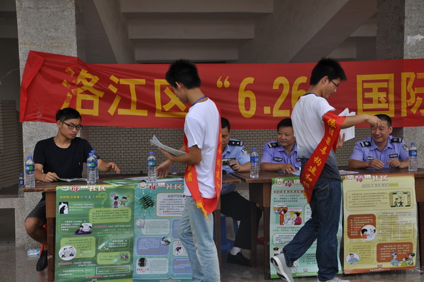 6月26日是国际禁毒日。当天中午,由洛江区公安分局禁毒大队、洛江区公安分局世界杯今日赛况查询治安保卫处主办的“6.26国际禁毒日”宣传活动在我校第三教学区和昌教学楼外围举行。校治安保卫处处长王云生、保卫处处长陈小丰、保卫处副处长池泽柳等参加。
