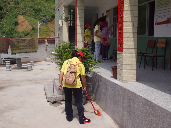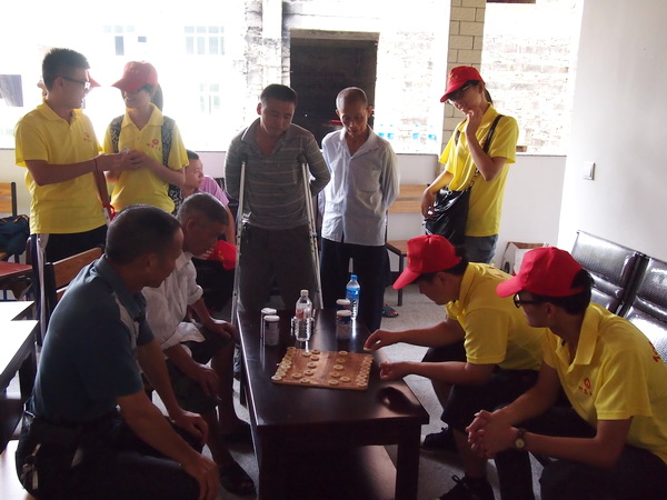 实践队的到来受到了当地村民的热情欢迎,梅山乡敬老院的院长接待了实践队员们。从院长的介绍中大家了解到,该敬老院共住有14位老人,他们大多是身患残疾、无儿无女的孤寡老人。除了帮助老人们打扫、整理房间,陪他们聊天,听他们讲述年轻时的辉煌与坎坷;实践队员们还与他们下象棋、跳棋,并为他们带去美妙的歌声。老人们热情地带领队员们参观敬老院,脸上洋溢着满满的幸福。