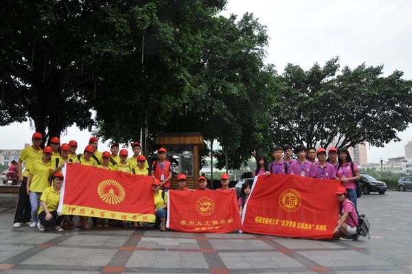 我校管理学院实践队(左)与泉州义工俱乐部(中)、福州大学筑梦青春志愿服务实践队(右)合影