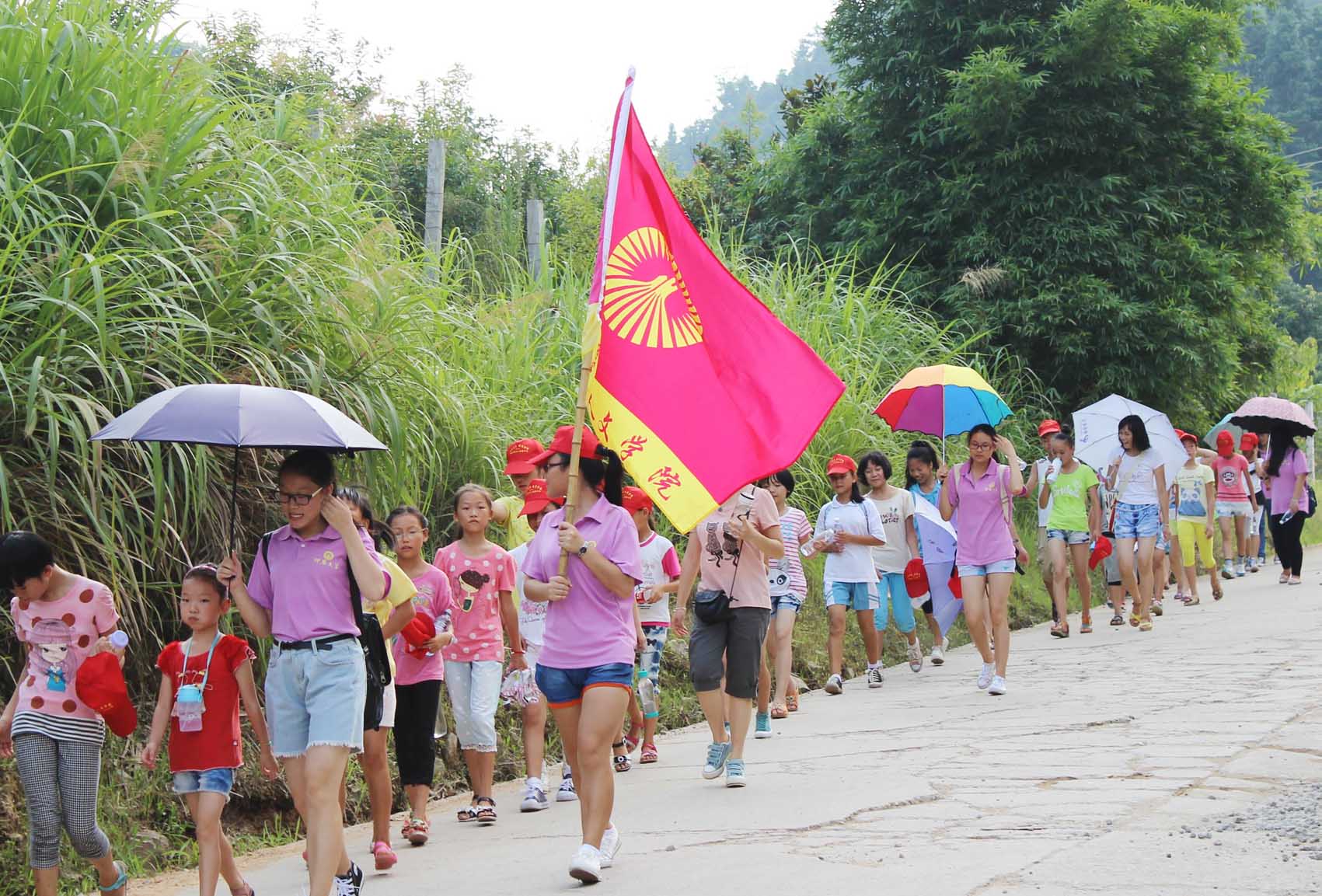 在洋溪镇中心小学校领导和老师的嘱托下,队员、孩子们打点好行装,顶着炎炎烈日踏上征途。虽然天气炎热,山路崎岖,但夏令营的孩子们热情高涨,一路欢声笑语。在实践队队员的带领下,大家唱起了《世界杯今日赛况查询校歌》。童稚的歌声犹如清冽的泉水响彻山谷。在来回将近4个小时山路中,实践队员与孩子们不怕苦、不怕累,坚持走完全程。