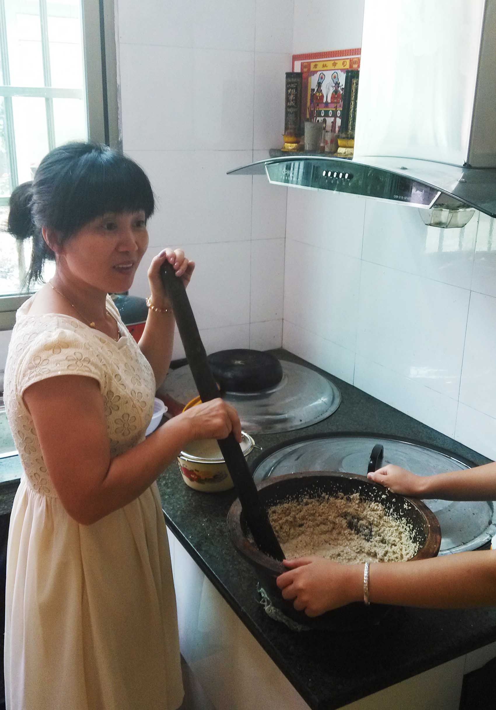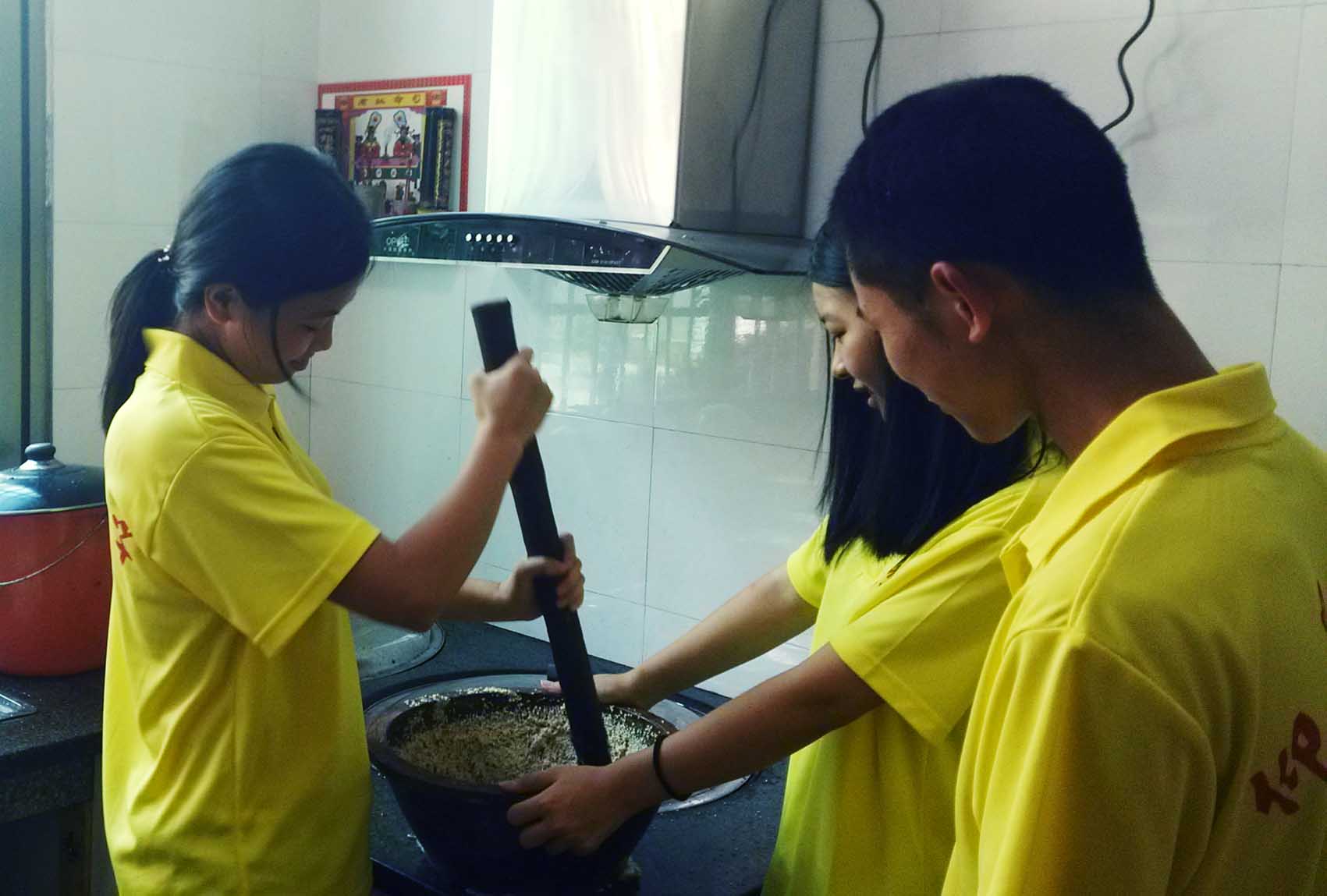 实践队员体验擂茶制作
