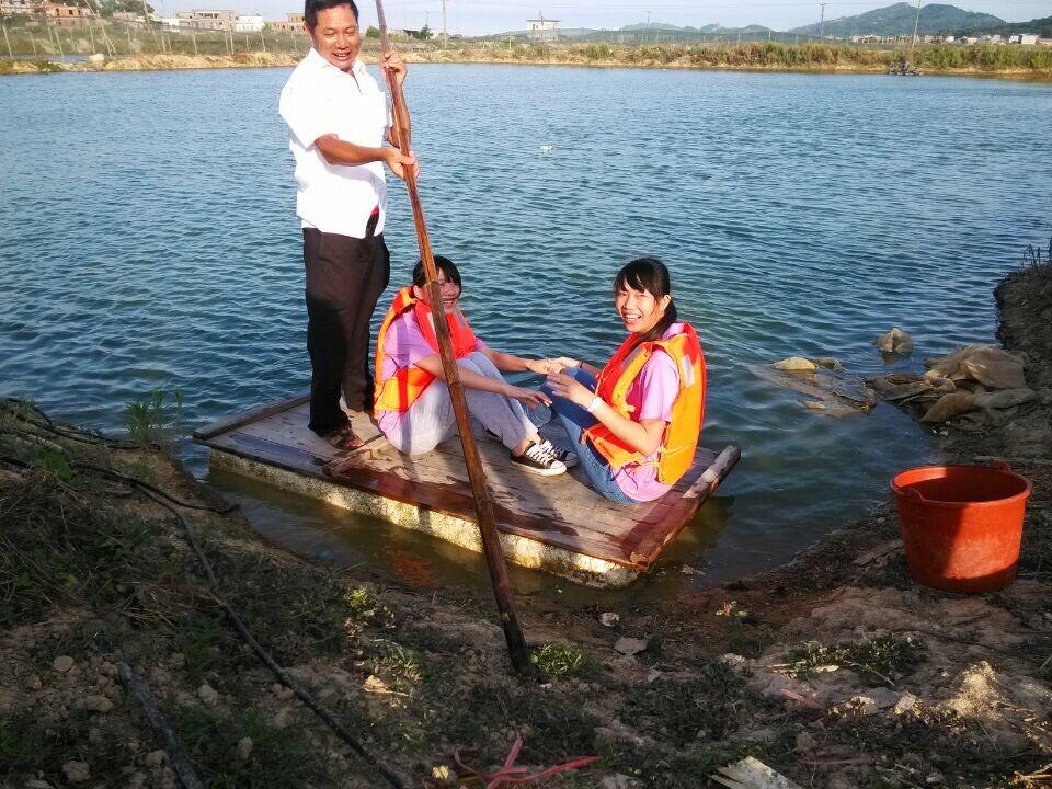 虾塘管理人员首先带领队员们参观了虾塘,并介绍了不少关于养虾的基本常识。参观结束后,队员们穿上救生衣跟随饲养员踏上小船学习如何投喂饲料。在池塘中央,饲养员将饲料斜向天空45度角抛撒,待饲料均匀落入池塘后,再次抛撒饲料,反复4次。最后,饲养员划船沿池塘边绕行,在这个过程中横向轻轻抛撒少量饲料。