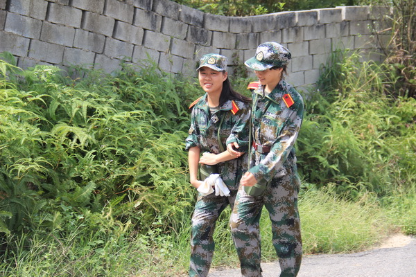 拉练行军过程中,军训团新生们充分发扬军队不怕苦、不怕累的优良作风,高喊口号、齐唱军歌,听从指挥,出色地完成了快速通过染毒区域、防空演练等各个预定训练项目。有的同学体力不支,但他们相互搀扶;有的同学脚底起泡,但坚决轻伤决不下火线。长时间的行军拉练不仅考验新生们的身体素质,更考验他们毅力。在相互鼓励、团结协作下,他们都坚持走完了全程,给随队工作人员们留下了深深的印象。