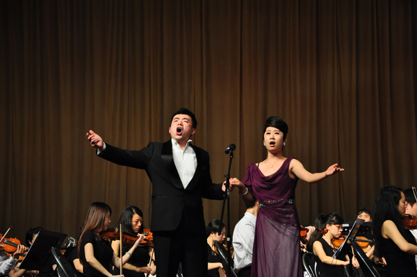 音乐会以一曲优美的《天鹅湖》组曲拉开了序幕。马斯涅的小提琴协奏曲《沉思》,优美的音色,宽广的音域,超强的表现力,给人一种震撼的感觉;《玫瑰花少女之舞》欢快活泼的旋律仿佛展现了一群少女在舞台上载歌载舞;战斗舞曲《马刀舞曲》雄壮激昂,高亢嘹亮的旋律,让现场的师生热情高涨;一曲极具维也纳圆舞曲风格的《爱情二重唱》跌宕起伏,时而舒缓时而欢快,时而惊涛骇浪般令人随之心潮涌动,将整个表演带入了高潮;而音乐剧《歌剧院的幽灵》组曲,以大提琴、低音提琴等深沉音色的乐器演奏为主,呈现了静冷的独特风格;《老实人》序曲以及《威风凛凛》进行曲曲调轻快,曲风欢快幽默。优美的乐声带领师生们穿越悠远的时空,古典与现代结合,高昂与低缓搭配,让大家在短暂的时间里感受了各种风格迥异音乐的无穷魅力,接受了一次心灵的洗礼。师生们为优秀演奏家们带来的精彩演奏报以经久不息的雷鸣般掌声。