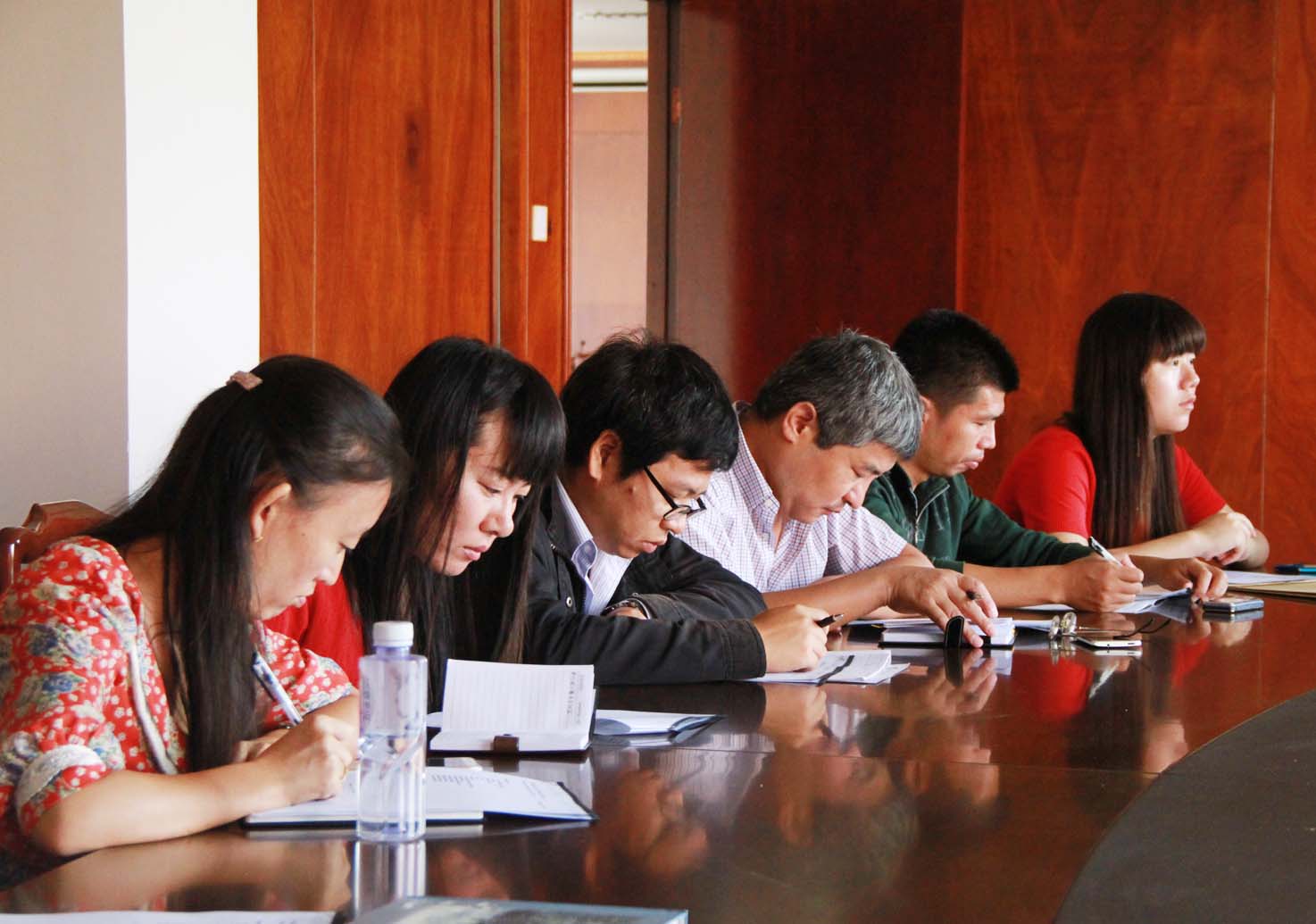 10月25日上午,我校2015年春季赴美访学教师选拔集训在第三教学区行政楼会议室举行。美国阿尔法大学联盟领军学校——班尼迪克大学教师苏怀志教授来校为参加集训的教师上了第一堂课。