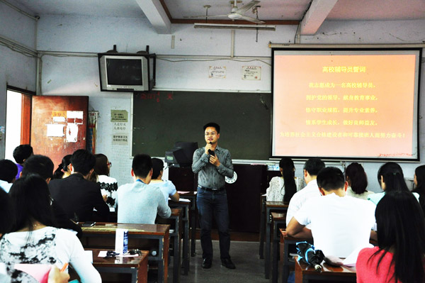 10月25日,由学生事务部和人事部联合举办的辅导员培训班在共和楼教学楼303室开班。学生事务部主任吴胜潮、学校办公室副主任兼人事部主任杜衡、管理学院常务副院长、党总支书记许惠铭,人文学院副院长、党总支书记胡友仁,校团委副书记曹流,心理健康咨询中心主任王艳红等参加开班仪式。