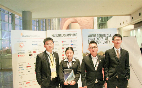 我校创行团队成员程锋、曾如婷、林琳、孙伟杰合影