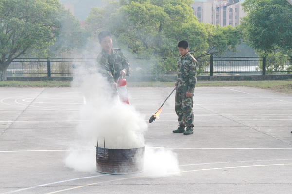 我校参训教工在消防教官的指导下使用灭火器对模拟火灾进行扑救