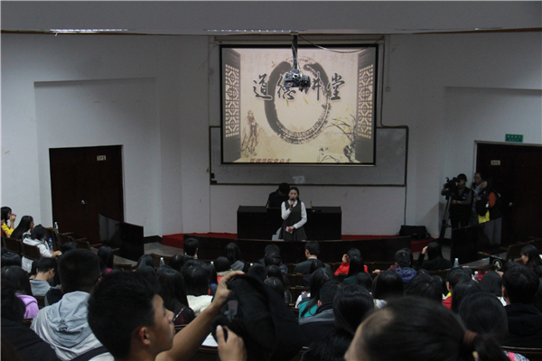 本次道德讲堂共设唱歌曲、看短片、学模范、诵经典、谈感悟和送吉祥六个环节。现场座无虚席,师生们共同感受着道德的力量。