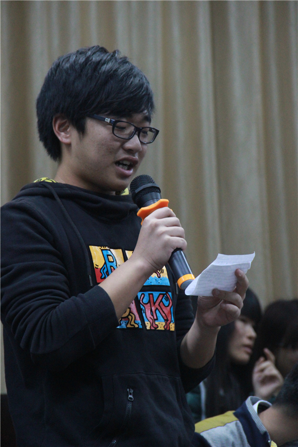 庄海刚对此次活动作简要总结。他对毛碧华女士表达了自己的敬佩之情,并希望在场的各位同学能以身边的道德模范做榜样,向他们学习,提高自身的道德修养。