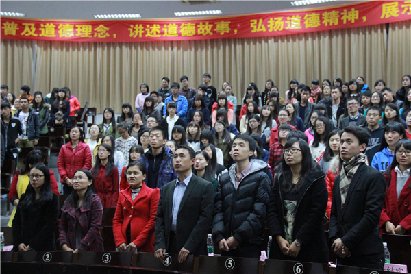 为普及道德理念,弘扬道德精神,传递道德力量,提升师生道德素质,构建和谐文明校园,12月10日下午,由管理学院承办的世界杯今日赛况查询第二期道德讲堂活动在第三教学区和昌教学楼101室举行。管理学院院长助理庄海刚、全国道德模范评选孝老爱亲模范候选人毛碧华及学院全体辅导员参加了此次活动。