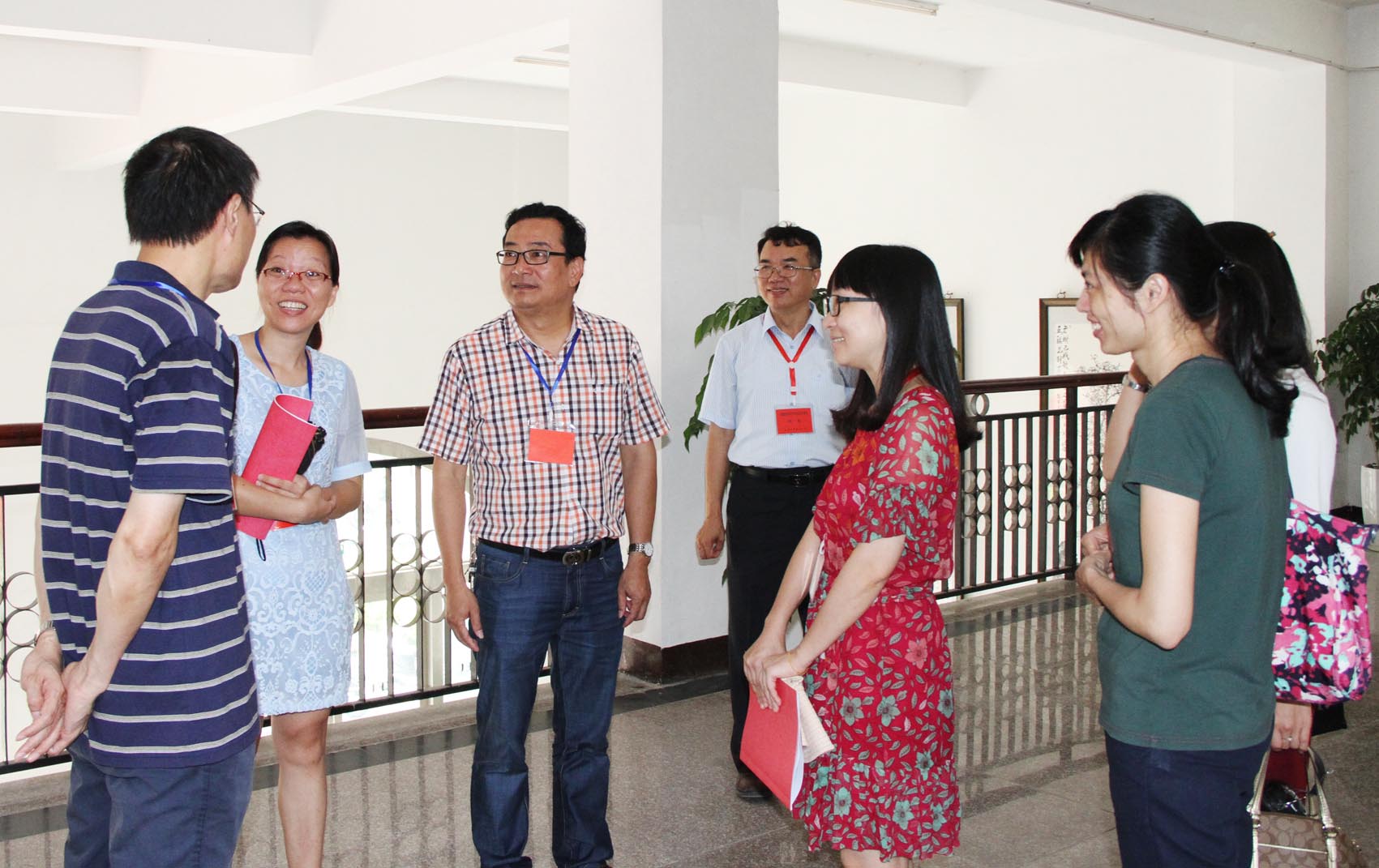 许总副校长(左一)、黄小铭副校长(左三)等向市派巡视员介绍我校考点工作