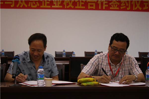 黄小铭副校长(右)与许毓新总经理(左)签署校企合作意向书