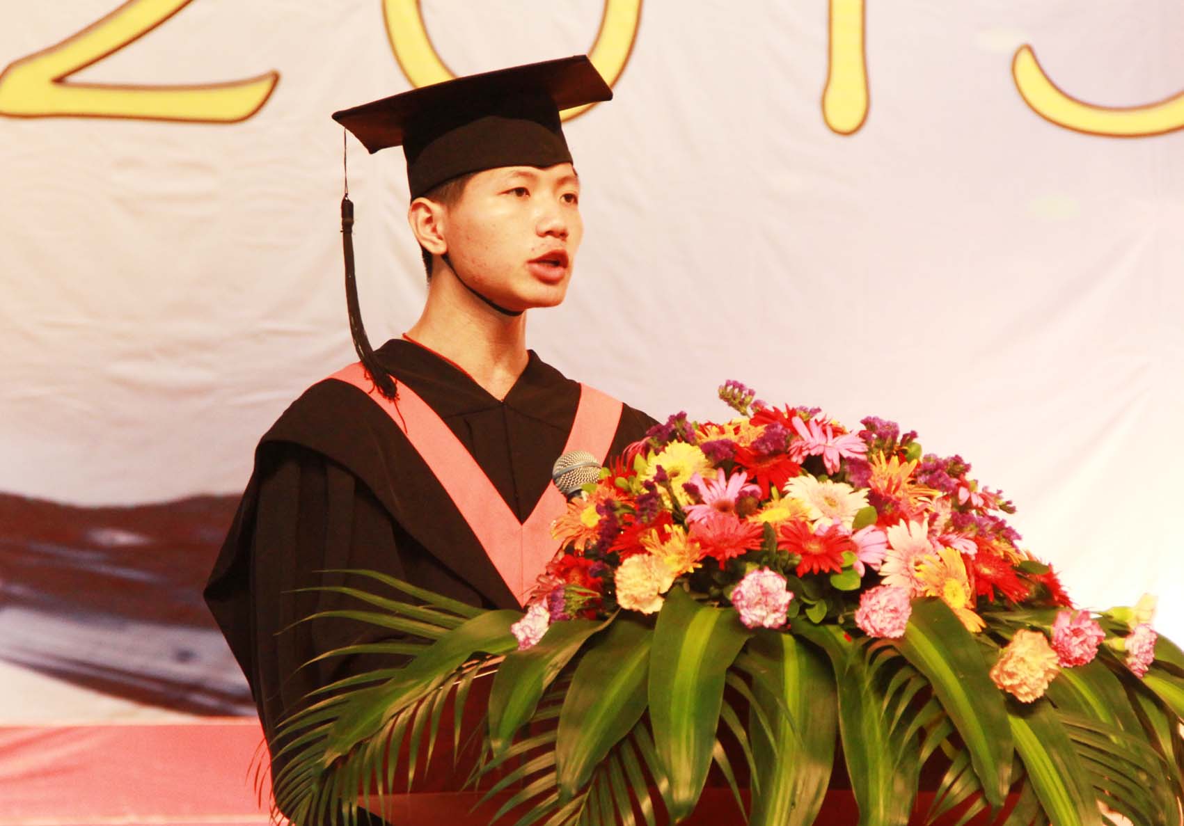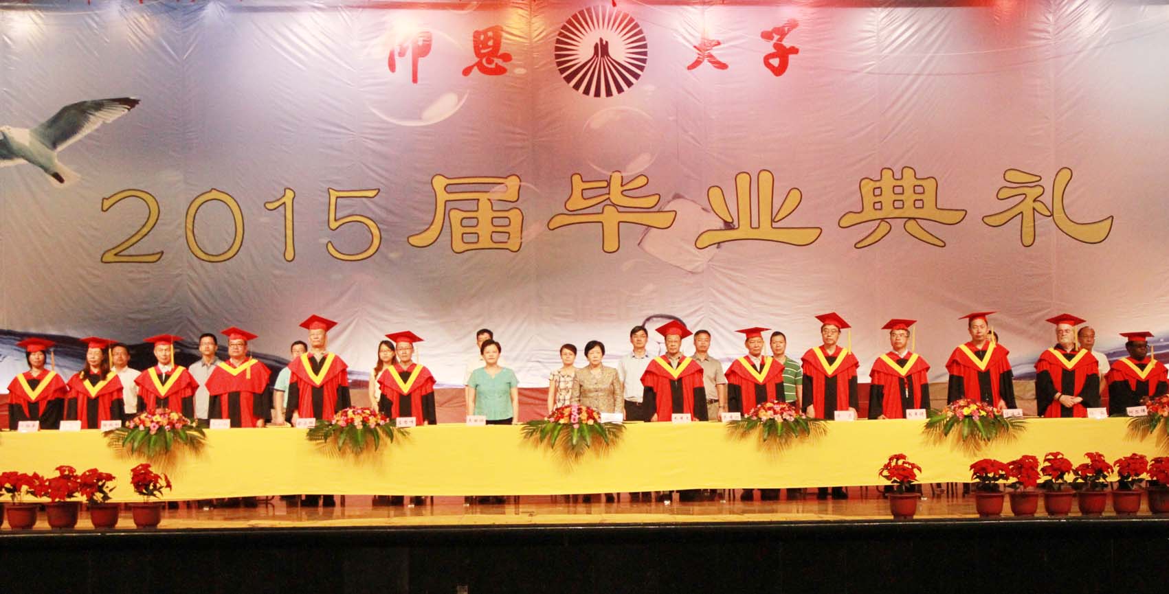 雄壮的国歌拉开了毕业典礼的帷幕。