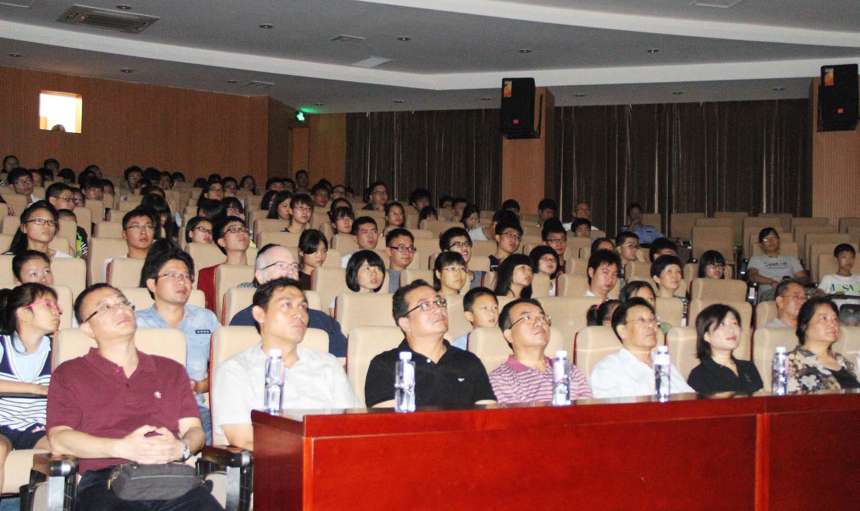 师生在学术报告厅观看视频直播