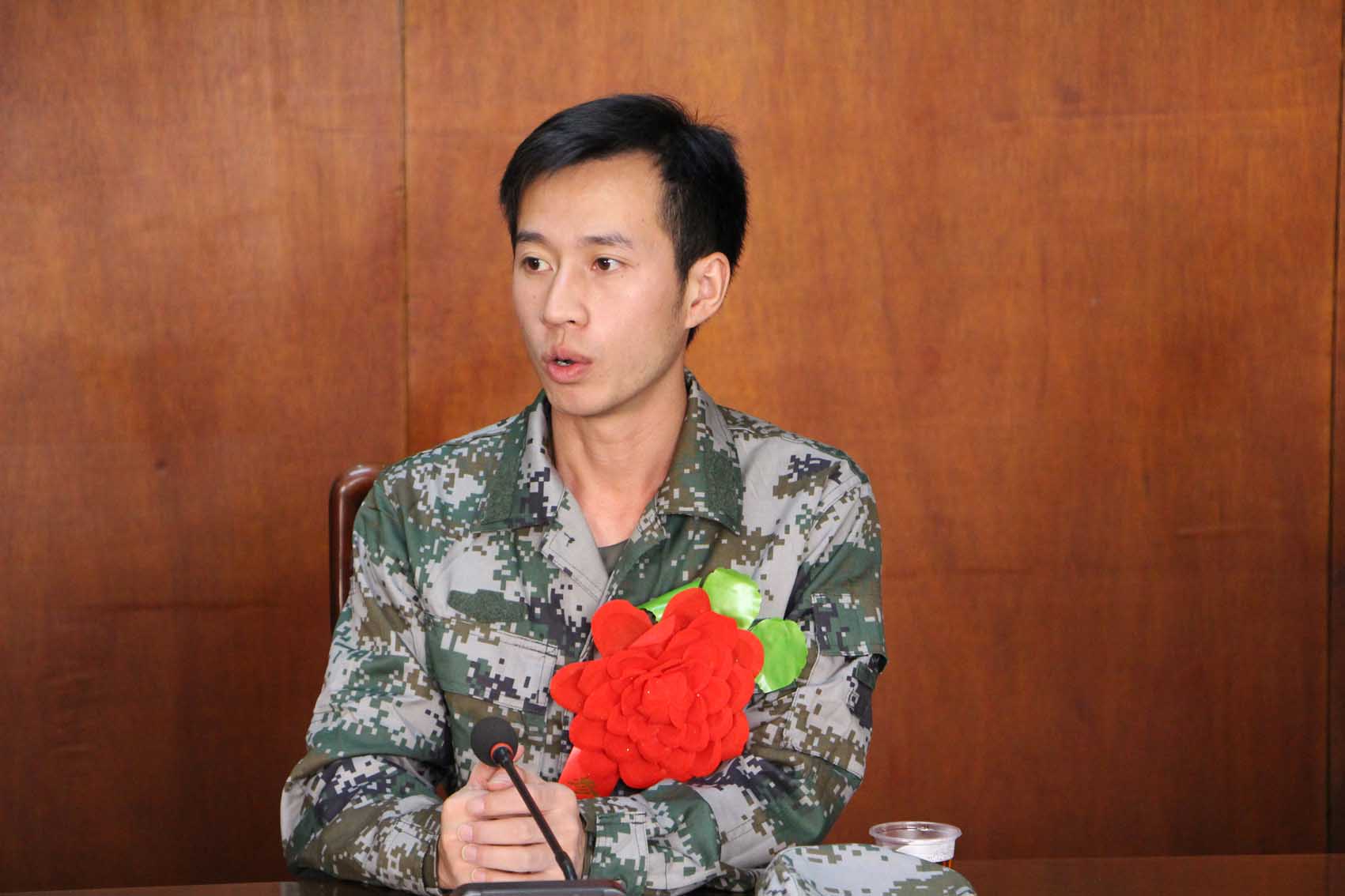 退伍复学学生代表先后发言,希望入伍同学摆正心态,适应环境,在军队中磨砺自己,报效祖国。