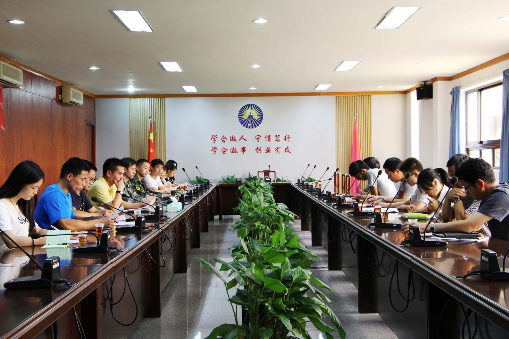 与会人员在校训前合影