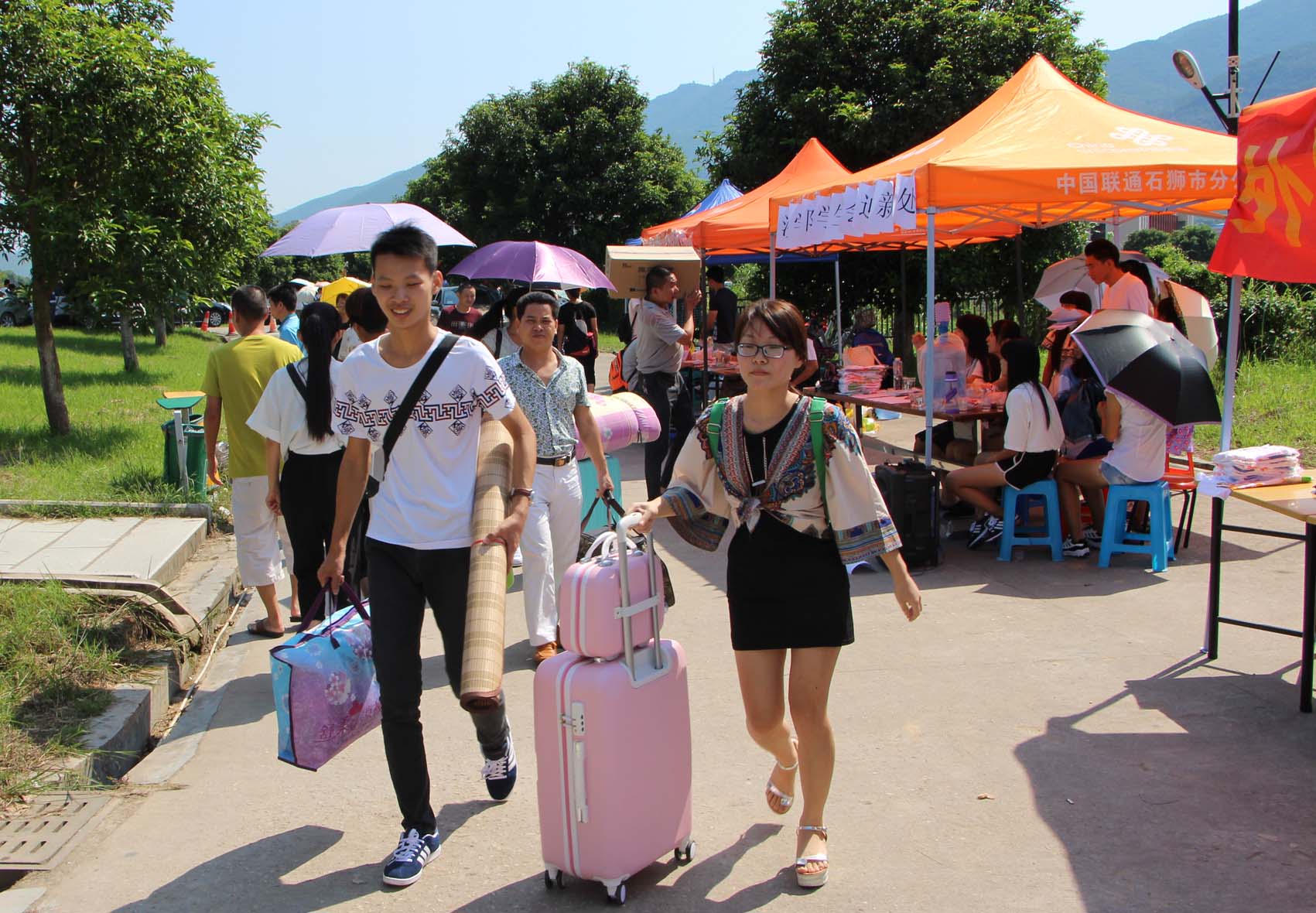 在第三教学区和昌楼、第一教学区普照大礼堂注册现场,参与注册工作的老师和同学们早早展开工作,新同学们按要求排队进行注册,现场秩序井然。校长朱秀文、校党委书记庄哲峰、常务副校长沈毅、副校长吴本湘、校党委副书记程如平等亲临注册现场,听取了迎新工作人员关于新生注册流程、后勤保障工作等的介绍,指导迎新工作,并亲切慰问参与迎新的工作人员及新生,希望工作人员继续以饱满的精神状态完成各项工作,让学生满意,让家长放心。
