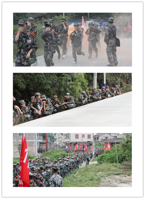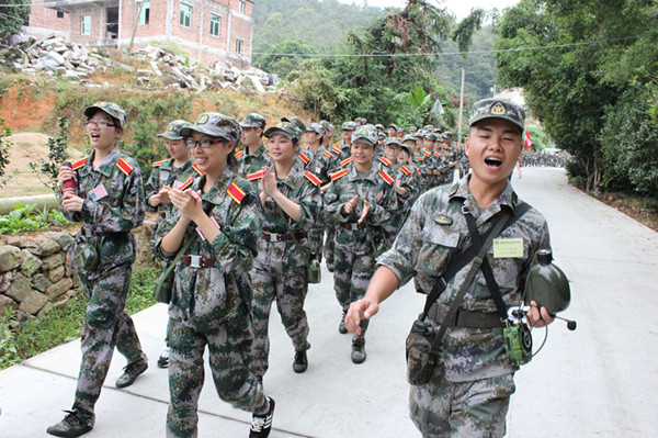 行军中,新生们充分发扬军队不怕苦、不怕累的优良作风,顶着风雨,服从指挥,齐唱军歌,高喊“流血流汗不流泪,再苦再累不掉队”的口号,出色地完成了“快速通过染毒区域”、“防空演练”等预定训练科目。各学院总支书记、辅导员、班主任、学生事务部等单位工作人员在随行中,不断为学生加油打气,他们一句句的鼓励,一声声的叮嘱,一段段的歌声,全部化为同学们前行的力量。在通过山间小道时,同学们一个拉着一个,时不时传来“前面有水坑,小心路滑”等提示语,互相扶持、团结友爱、互相鼓励。长时间的行军拉练不仅考验新生们的身体素质,也考验他们的毅力,更是他们自信、自强、自律精神的一次升华。