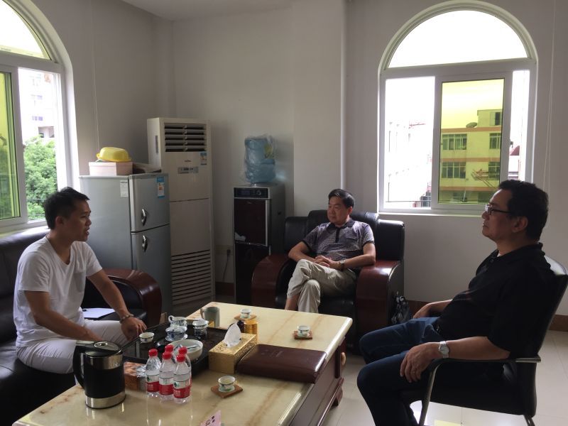 沈毅常务副校长(中)、黄小铭副校长(右)与校友林时乐(左)座谈