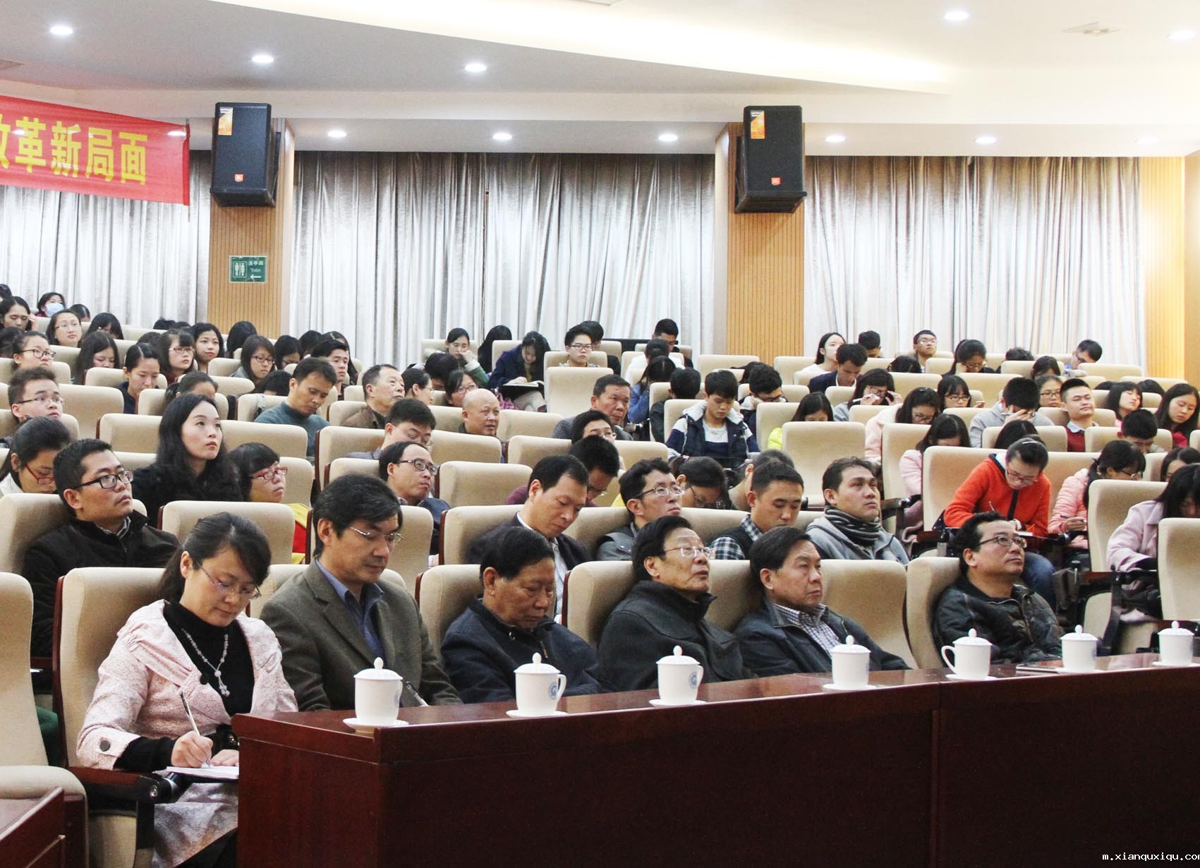 为了深入学习贯彻党的十八届五中全会精神,12月23日下午,我校邀请党的十八届五中全会精神省委宣讲团成员、省委宣传部部务会议成员、省委讲师团团长肖贵新同志在第一教学区学术报告厅作党的十八届五中全会精神宣讲报告。学校全体校务委员、校党委委员,各院(系、教研部)、各部门党政负责人,全体辅导员、思政部全体教师、校院团委学生会主要干部、部分学生党员共280多人出席宣讲报告会。
