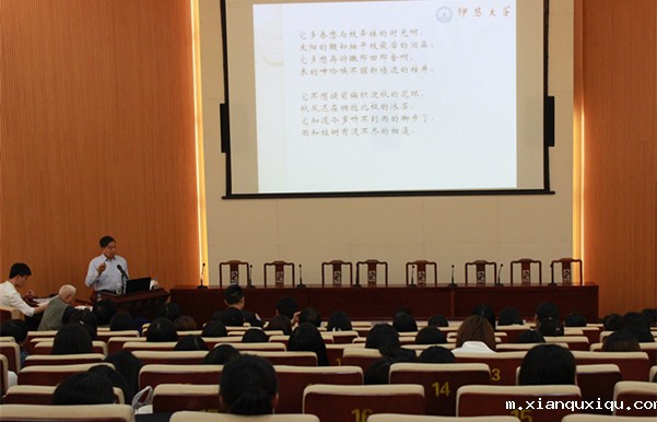 “生活中不能没有诗”,主讲者引经据典、侃侃而谈。4月20日下午,沈毅常务副校长在第一教学区多功能报告厅作《谈谈新诗的流变、欣赏与创作》讲座。副校长吴本湘,校长助理石羊、鲍莹玉,学生事务部主任吴胜潮等出席讲座。红城文学社指导老师冯国晨、首任社长许金钢、人文学院师生,学生会、团委以及各社团代表到场聆听讲座。