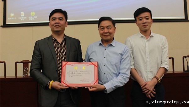 红城文学社新老社长为沈毅常务副校长(中)颁发聘书并合影