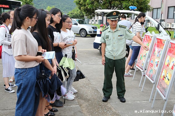 现场还设有交通安全知识、消防安全知识等宣传展板。工作人员为同学们讲解应对突发事件时的注意事项,给同学们分发安全知识手册。