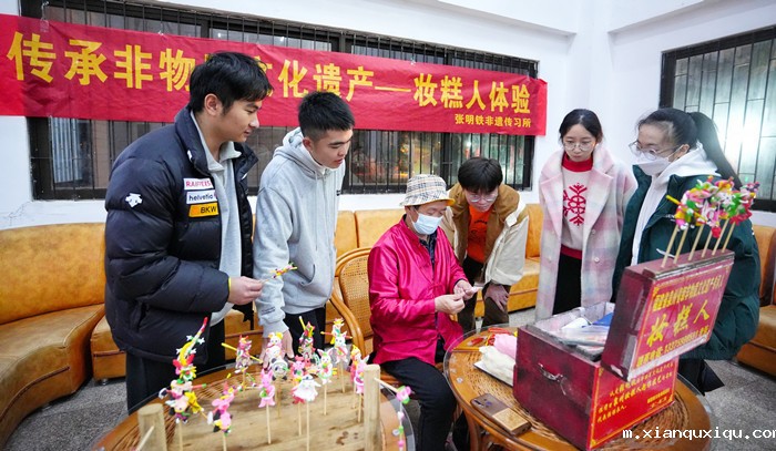 泉州妆糕人制作技艺非遗代表性传承人张明铁向师生展示泉州的特色文化