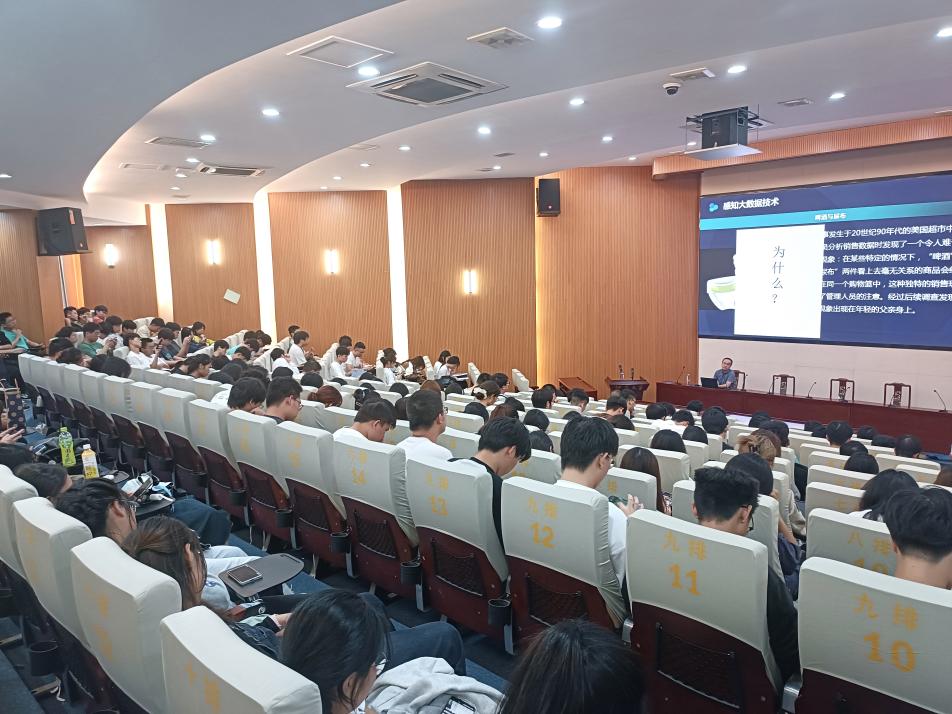 讲座中,吴涛向同学们阐释了“三分技术,七分数据,得数据者得天下”的内在涵义。他指出,我国发布的有关大数据发展的通知及世界各国出台的大数据发展计划,均说明了“数据已成为国家基础性战略资源,大数据已成为国际竞争新焦点”。随后,吴涛通过美国超市中“啤酒与尿布”的现象向同学们生动解释了何为大数据及大数据的核心,还通过生活中极易被忽略的种种现象,让同学们感知到大数据技术的广泛应用。