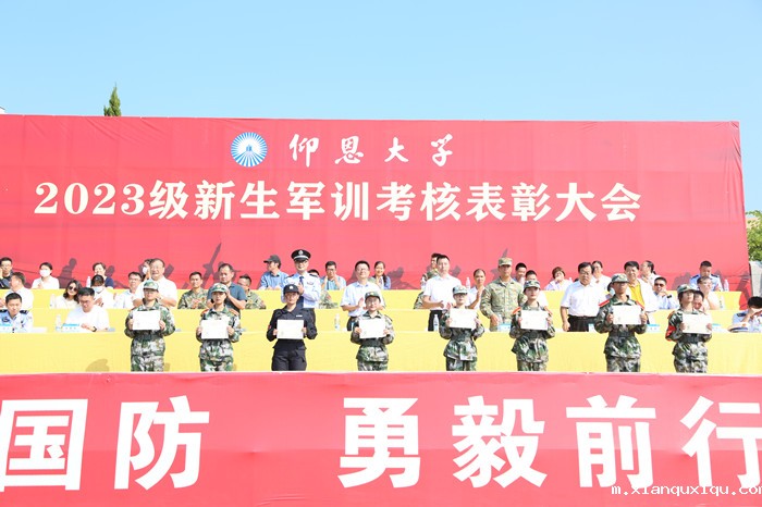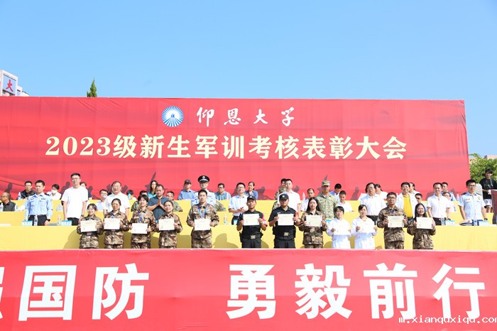 大会宣读《2023级新生军训表彰决定》,对在军训中表现突出的集体和个人进行表彰。管理学院、法学院、艺术与教育学院荣获军训优秀组织单位;经济学院、人文学院、管理学院获优秀方阵,外国语学院获养成教育优胜单位;人文学院等单位在第二届军歌合唱比赛中获奖;雷欣等学生荣获2023级新生军训“木兰杯”荣誉称号;罗涛等学生荣获2023级新生军训“勇士杯”荣誉称号;吴锦霞等12名教职工获军训综合保障先进个人;吴粤等共12组学生在第七届“爱我国防”演讲比赛中获奖;郑培源等共310名学生获新生军训标兵;杨慧等共140名学生获新生军训单项考核优胜个人;李诗成等共20名学生获新生优秀辅助教官。