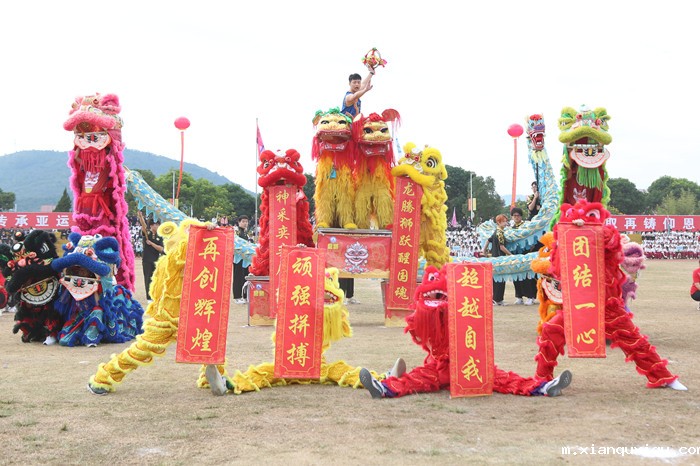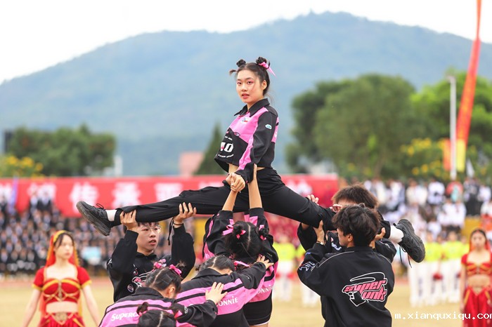 紧接着由我校师生精心策划、自编自导的大型文体表演陆续上演。啦啦操《悦动青春》《乘风》活力绽放、动感十足、亮点纷呈;排舞《同爱同在》倾情演绎青春律动,寓意向阳而生,遇见美好,传递了积极向上的正能量;节目《等你来》表演队形多变,活力四射,精彩的舞蹈令人赞叹;中华优秀传统文化展示《龙腾狮跃》、五祖拳操等,让师生近距离感受龙狮文化、武术文化的独特魅力,领略中华优秀传统文化的风采。