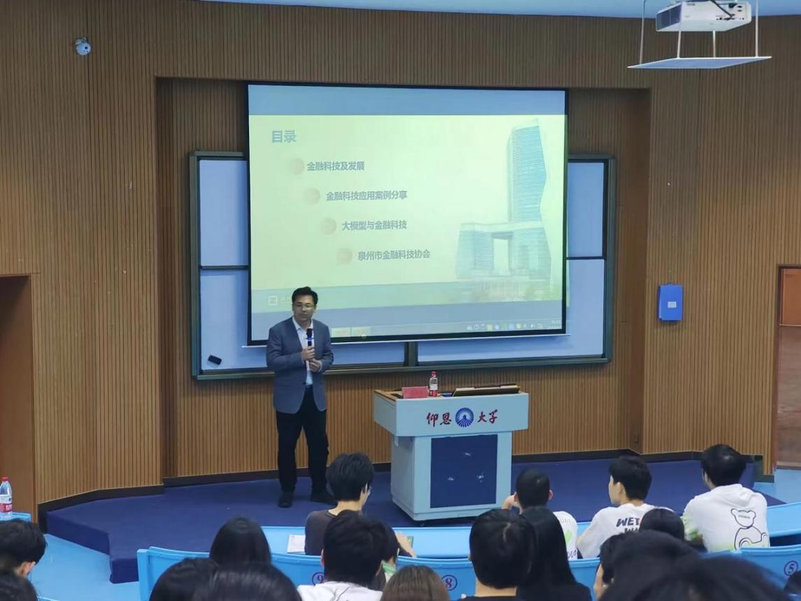 4月24日下午,工程技术学院在第三教学区海纳讲堂举办“金融科技革命:从数据到价值的跃迁”专题讲座,泉州发展集团、工程技术学院客座教授洪志令博士担任主讲,工程技术学院党总支书记兼副院长曾凤生与师生到场聆听。