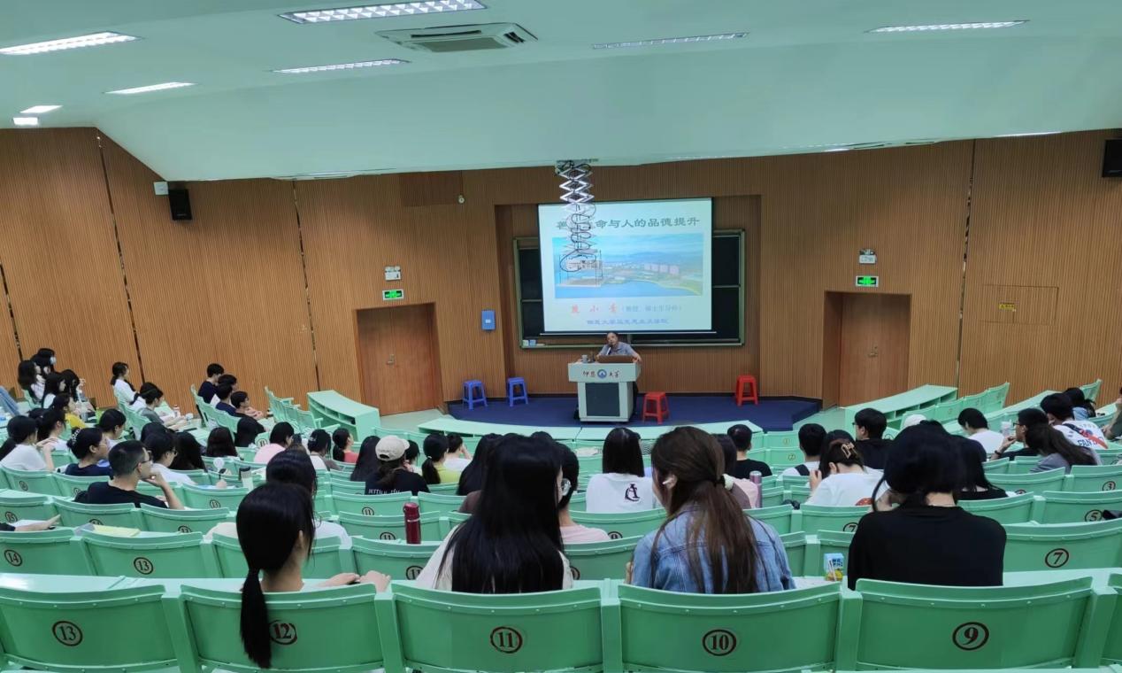熊小青围绕“对生命的正确认知”“为什么要善待生命?”两方面向同学们分享了自己的见解。他以大学生虐猫被高校拒收事件为案例向同学们阐释生命的内涵,指出“生命是科学问题,善是价值和道德的问题。”他结合实际从“科技生命”“物质生命”“经济生命”“工具生命”四个方面展开论述,让看似抽象的生命概念深入同学们的心中,激发了同学们进一步思考生命的意义。