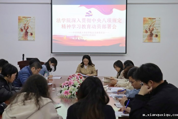 会后,各党支部迅速行动,召开支部深入贯彻中央八项规定精神学习教育动员部署会。各党支部将结合自身实际,通过“三会一课”、主题党日等活动,组织党员干部深入学习习近平总书记关于加强党的作风建设的重要论述和中央八项规定及其实施细则精神。学院将以此为契机,以更加坚定的信念、更加务实的作风、更加有力的措施,推动学院党的建设和作风建设迈上新的台阶。(法学院党总支/文图)