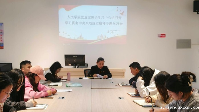 4月2日下午,人文学院党总支理论学习中心组在第三教学区普照教学楼225室召开深入贯彻中央八项规定精神学习教育专题会。人文学院党总支书记兼副院长岳秀文主持会议,党总支理论学习中心组成员参加学习。