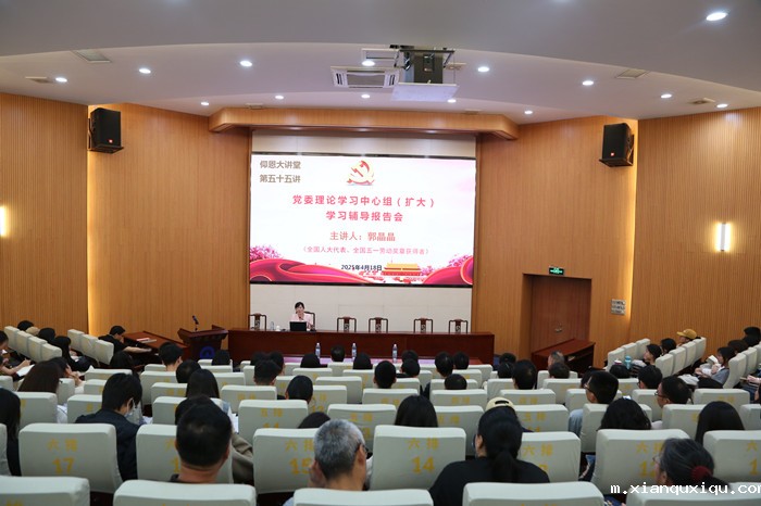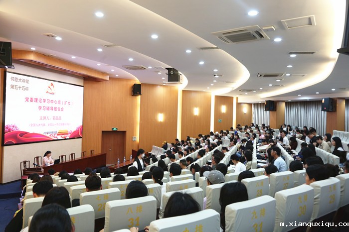 4月18日下午,我校在第一教学区多功能报告厅召开校党委理论学习中心组(扩大)学习会议,集中学习全国“两会”精神。我校校友、第十四届全国人大代表、福建福化古雷石油化工有限公司党群人资部(宣传办公室)主任郭晶晶应邀作全国“两会”精神学习辅导报告。全体在家校领导、校党委委员、各党总支、直属党支部书记、各党政部门负责人、马克思主义学院全体教师、全体辅导员、团学干部到场聆听。