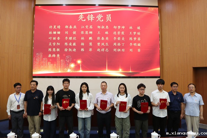 校党委宣传部部长陈章祧宣读校党委《关于表彰先锋党员和先锋党支部的决定》。许夏晴等31名师生被授予“先锋党员”称号;中国语言文学系学生第二党支部等10个基层党组织被授予“先锋党支部”称号。