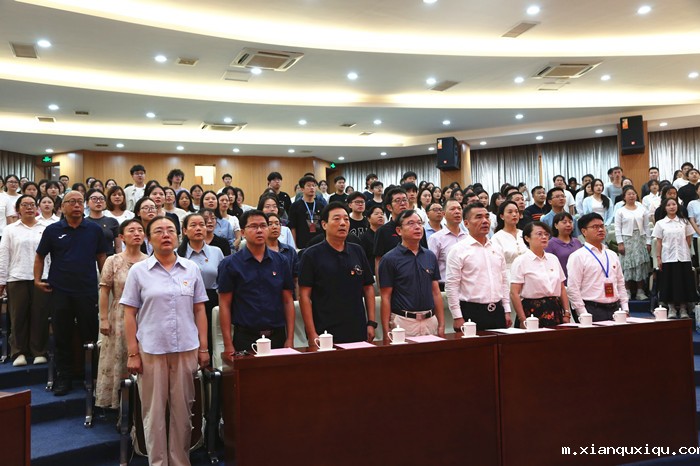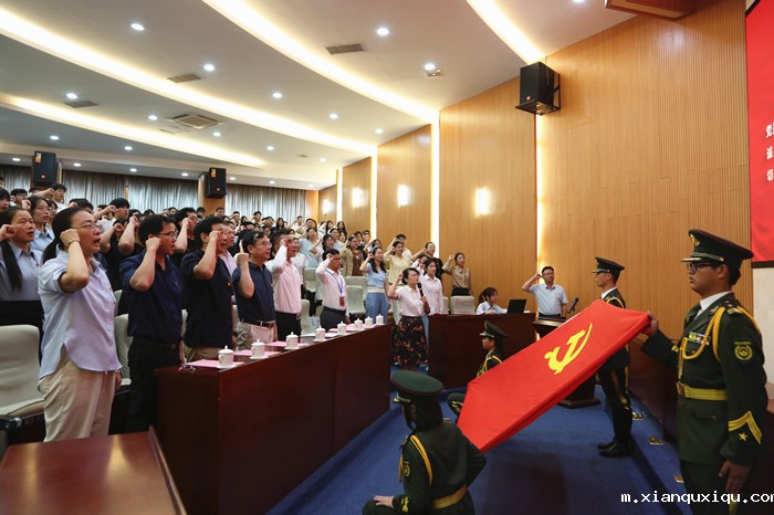 大会在雄壮的国歌声中拉开帷幕。校党委委员鲍莹玉带领新党员宣誓、老党员重温入党誓词,全体党员举起右拳,齐肩握拳,神情庄重,精神饱满,面向党旗庄严宣誓,铿锵有力的宣誓声响彻会场,表达了对党的无限忠诚和崇高敬意。