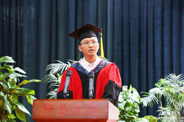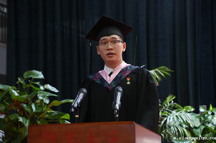 教师代表、数学系主任连博勇教授在发言中希望全体毕业生们保持终身学习的态度,不断提升自己;勇敢面对困难和挫折,不要轻易放弃,坚持不懈努力,让自己更加坚强、更加成熟;心怀感恩,以梦为马,不负韶华,书写精彩人生。