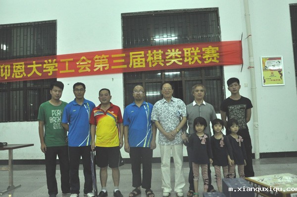 耗时两个多小时,经过几轮搏杀,在现场师生的关注下,象棋组比赛终于决出胜负。6月4日晚,在仰恩文体中心举行的校工会第三届棋类联赛在完成五子棋、跳棋、象棋等赛事后圆满结束。中国象棋类:吴隆鑫夺得第一名,黄英胜获第二名,战勇获第三名;五子棋类:李克钦夺得第一名,乔祖诒获第二名,刘洪华获第三名;跳棋类:谭丽萍夺得第一名,郭锦云获第二名,黄丹获第三名。