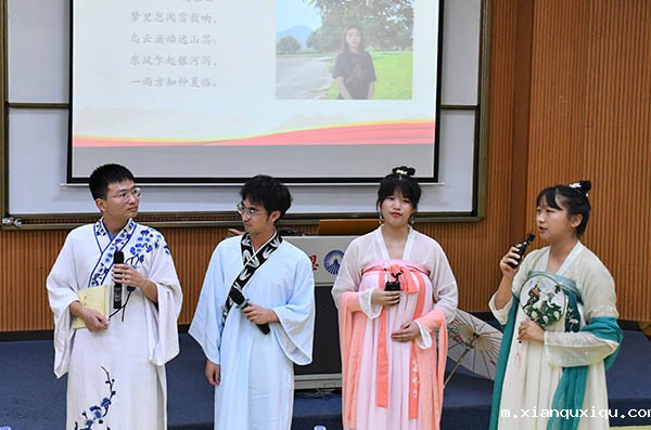 据悉,此次朗诵会是2020中文系专业核心课程“大学写作”的一次课程思政教学成果汇报表演。该课程采用团队授课制,其中“格律诗写作”课程由许总教授担任教学。今年恰逢中国共产党建党100周年,许总教授充分挖掘课程思政元素,将弘扬中国古典诗词文化与党史学习教育紧密结合,带领学生运用格律诗词知识以“学党史,咏华章”为主题,开展了古体诗创作实践活动。活动收到原创诗歌220首,经过批改、评定,共有46篇获奖作品。其中,一等奖9篇,二等奖11篇,三等奖26篇,50首作品参与本次汇报表演。(侯依依、吴梦凡、蔡梦雪/文 侯依依、苏亦轩/图)