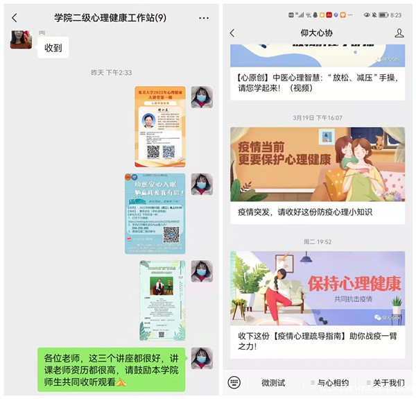 及时推送心理健康防护有关知识和线上讲座