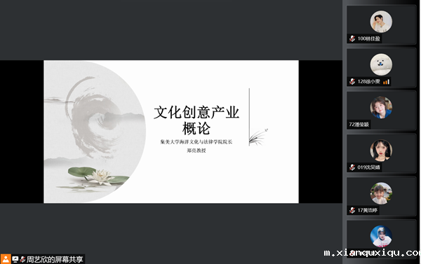 为丰富学生的知识储备,提高技能水平,进一步认识和学习文化创意产业,近日,福建海洋文化与创意产业研究基地主任、“闽江学者”特聘教授、集美大学海洋文化与法律学院院长郑亮应邀在线上为人文学子讲授文化创意产业概论课。