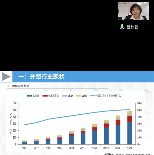 5月11日下午,外国语学院线上举办“后疫情时代外贸行业现状发展与就业情况前景分析”讲座,泉州市万峰家居用品有限公司副总经理吕秋蓉担任主讲,师生线上聆听讲座。